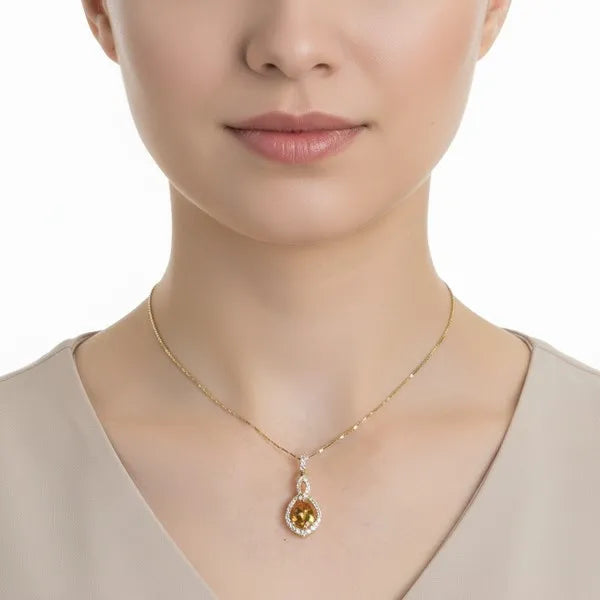 • Chain Length: 16" • Clasp: Spring Ring • Metal: 14K Yellow Gold • Stone Type: Citrine • Stone Size: 1.06 ct. • Diamonds: .29 (ct. tw.)